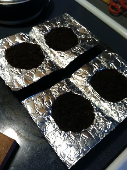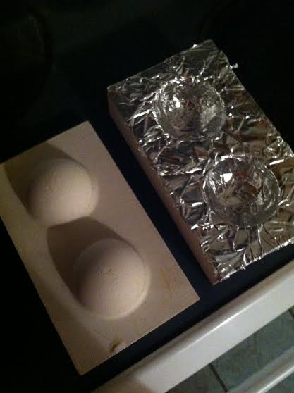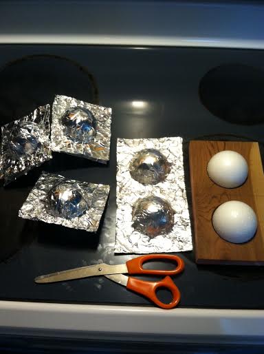 Kind of crude looking so some other method was thought about and settled on a foam ball mold of sorts, to press foil around and make clam-shells...