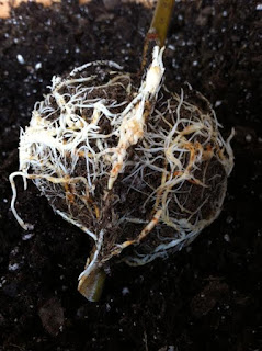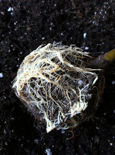 The next three photo's show root primordia forming in the empty foil balls over a few weeks time.