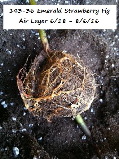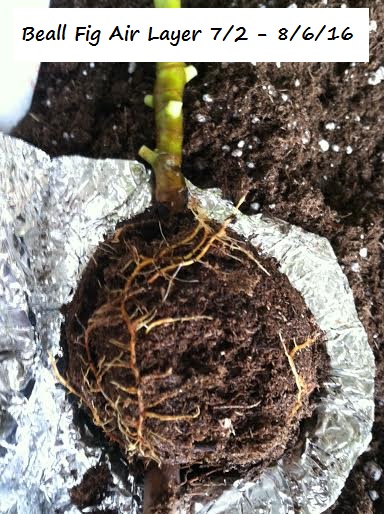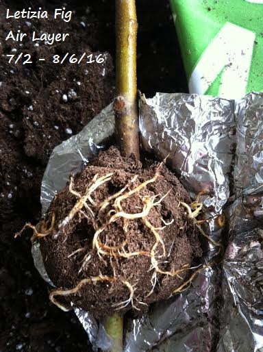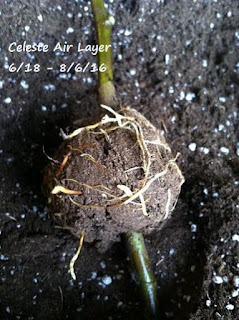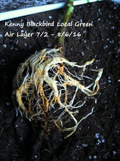 Note the dates. Some varieties rooted quickly and some took a bit longer. No scarring or girdling or rooting hormone was used on any at any time during this project from the beginning. No additional moisture was provided after the initial setting of the air layers. It was just damp.