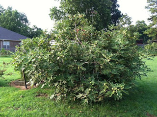 The tree in our blog title was spotted while driving by a Fort Smith residence. I met with the owner, obtained permission to get these photo's and with the help on online fig experts, have been able to determine it as being a Brunswick fig, also known as Magnolia and large White Turkey. The tree is fifteen years old and has never been winter protected and never suffered any significant die back.
