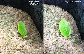 The Valley Black Fig above was started in a previous sand experiment in a plastic pail (below), separated into three plants and each transferred into the Root Pouch grow bags with sand, where they are currently thriving, growing like crazy!.
