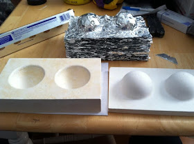So I really love the simplicity of applying these air layers and decided to make a better foil press out of plaster. A box was built up around the original and plaster poured in