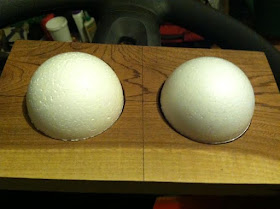 Kind of crude looking so some other method was thought about and settled on a foam ball mold of sorts, to press foil around and make clam-shells...